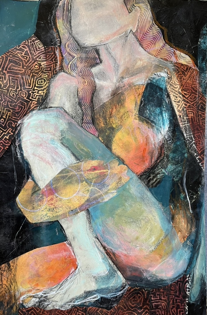 This female figure collage was also accepted. I did it 2 years ago - gluing hand painted or printed collage papers over a prrevious figure drawing, adding paint as well.