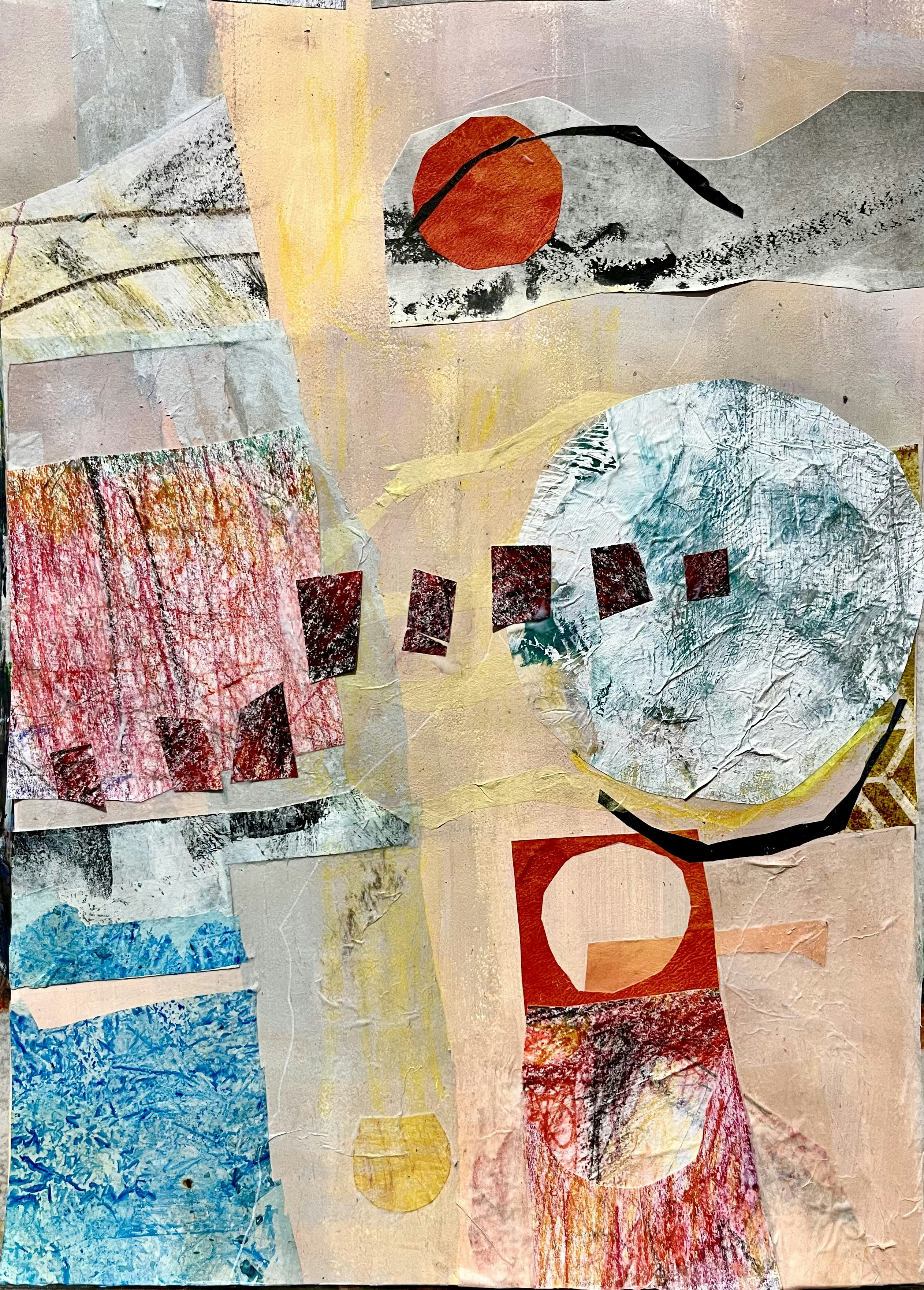 I tried adding a couple faces from a sketchbook, so see how I could deal with mixing in a figure. It does seem to dominate no matter how much scribbling I do over it. But I'll continue working with it because I really want to mix abstract and figurative elements.