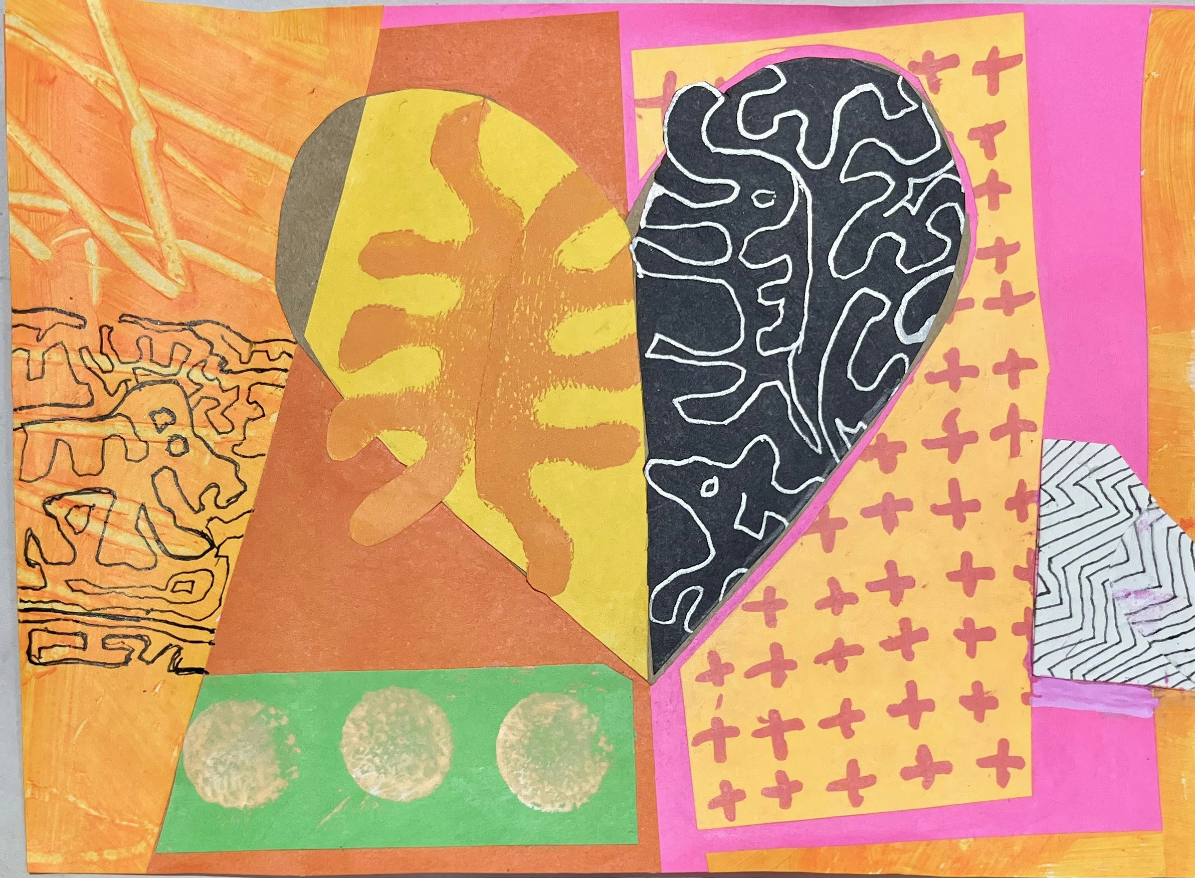 Well hearts were Jane's February project. And although I hesitated taking time to make hearts, the simple content turned out to yield some wonderful results and taught me so much about working with patterns, textures and values. We began with whole heart designs, then breaking hearts up in to halves, and then quarters... getting fairly complicated. It became really addictive and I just let it happen and it was SO MUCH FUN... it just made me happy to make them.